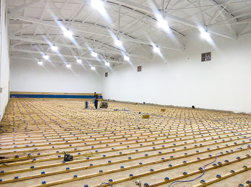 河北少年之星體育技能訓練營,位于河北省邢臺市,場地尺寸共1400平米,選用楓樺木單層龍骨結構,期待完工的效果~