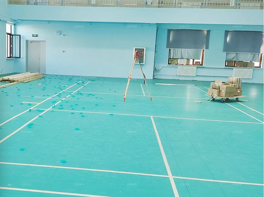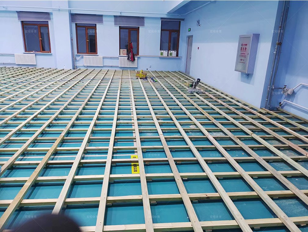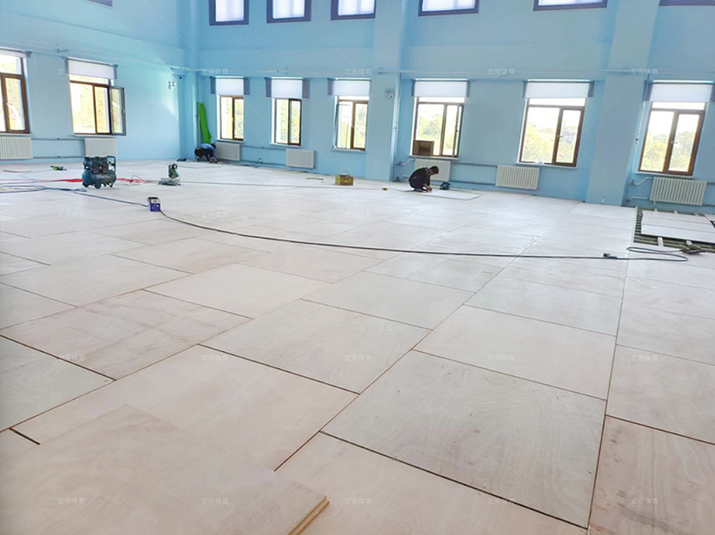 鶴崗法院羽毛球館木地板鋪設(shè)中,場館采用楓樺木A級單層龍骨結(jié)構(gòu),期待完工效果~